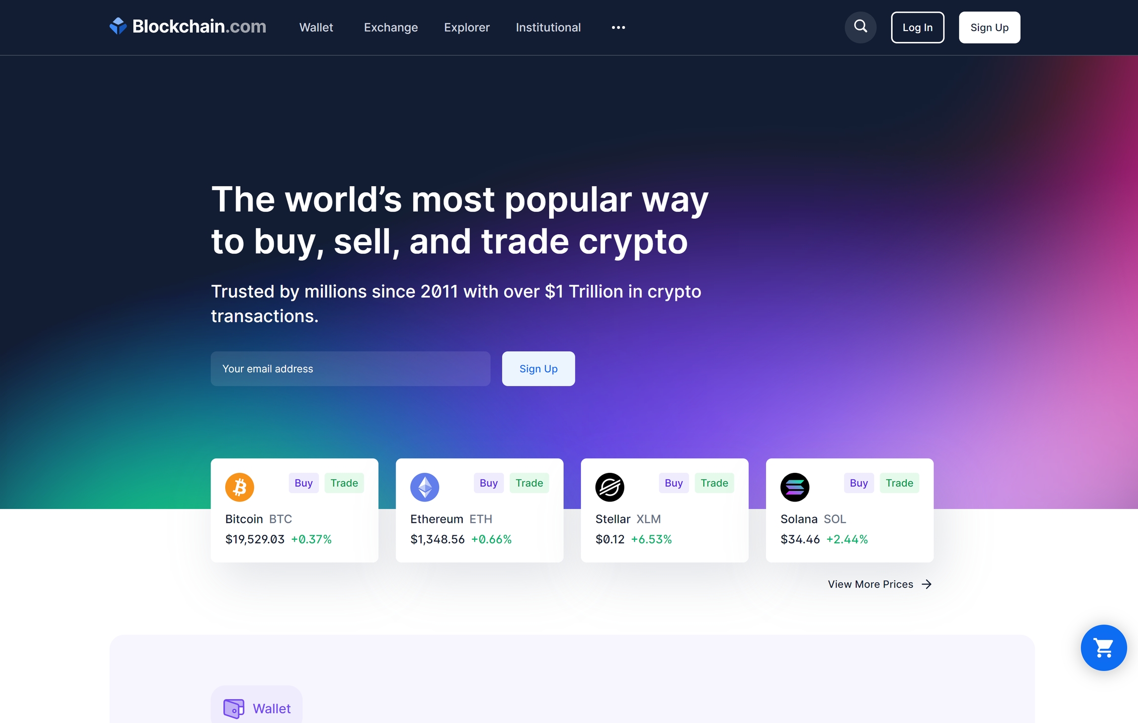 Blockchain.com | Buy Bitcoin, Ethereum and more with trust The world’s most popular way to buy, sell, and trade crypto Trusted by millions since 2011 with over $1 Trillion in crypto transactions.